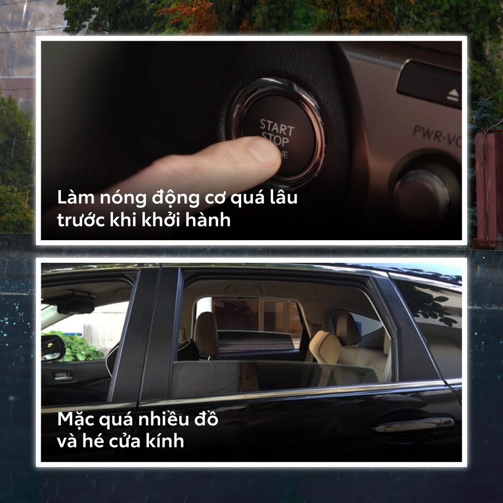 ❌ Làm nóng động cơ quá lâu trước khi khởi hành: Chỉ nên làm nóng động cơ trong khoảng 1-2 phút. Khi khởi hành không nên đạp quá mạnh chân ga, đồng thời duy trì cấp số và vòng tua máy phù hợp ở tốc độ thấp để giữ động cơ được bền hơn.